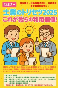 今回の合同研修では、三士業から講師をお招きし、企業様に最も多く求められる各士業の業務について講義を行って頂きます。それぞれ異なる専門分野で活躍する士業が一堂に会することで、普段触れることの少ない他士業の仕事ぶりや思考に直接触れる貴重な機会となります。日々の業務への新たな着想や視点を得られるだけでなく、周辺分野の知識習得や、新しい仕事仲間のネットワークを広げるきっかけにしていただければ幸いです。奮ってご参加ください。